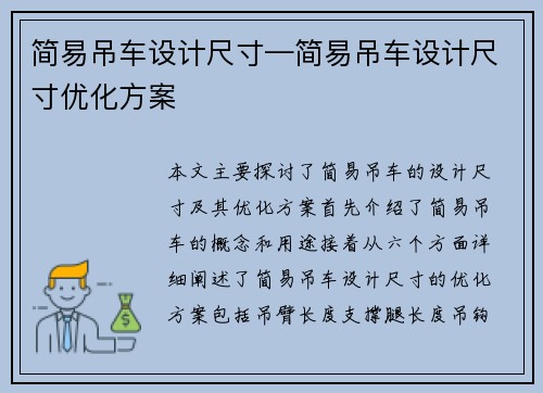 文章本文将从六个方面对重庆大江吊车厂进行详细阐述,包括公司概况、产品研发、制造工艺、质量管理、市场营销和未来规划。重庆大江吊车厂致力于打造中国智造重器,通过不断创新和提高产品质量,成为国内同行业中的佼...